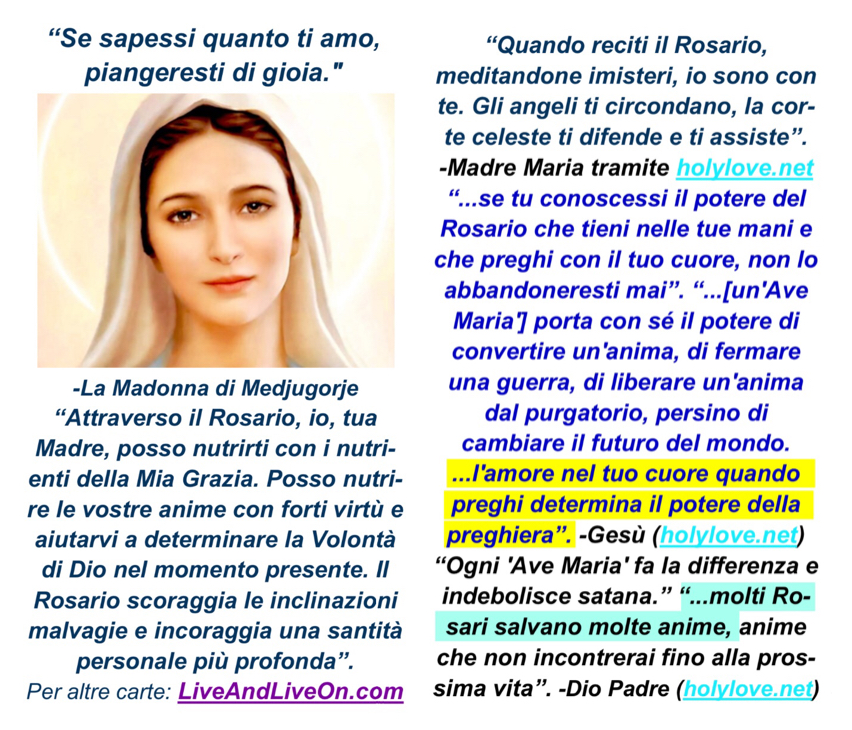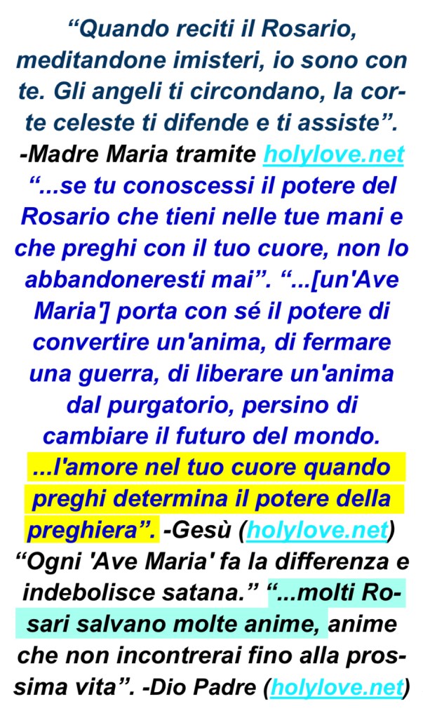 Sentiti libero di diffondere le seguenti preghiere/citazioni a familiari/amici tramite SMS/e-mail, per la Gloria di Dio e la salvezza delle anime!